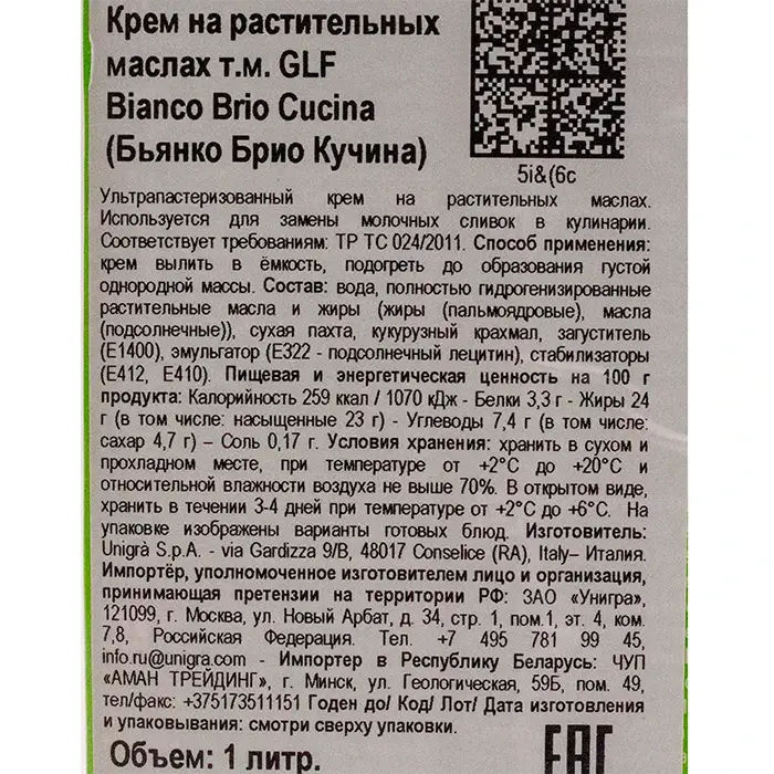 Ультрапастеризованный крем на основе растительных жиров и масел — удобная альтернатива сливкам животного происхождения. Он не содержит сахар, долго хранится, имеет приятный молочный вкус, устойчив к заморозке, хорошо сохраняет форму во взбитом состоянии.