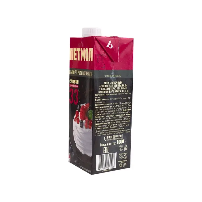 Крем сливочный (сливки для взбивания) жир. 33% "Петмол", 1 кг
