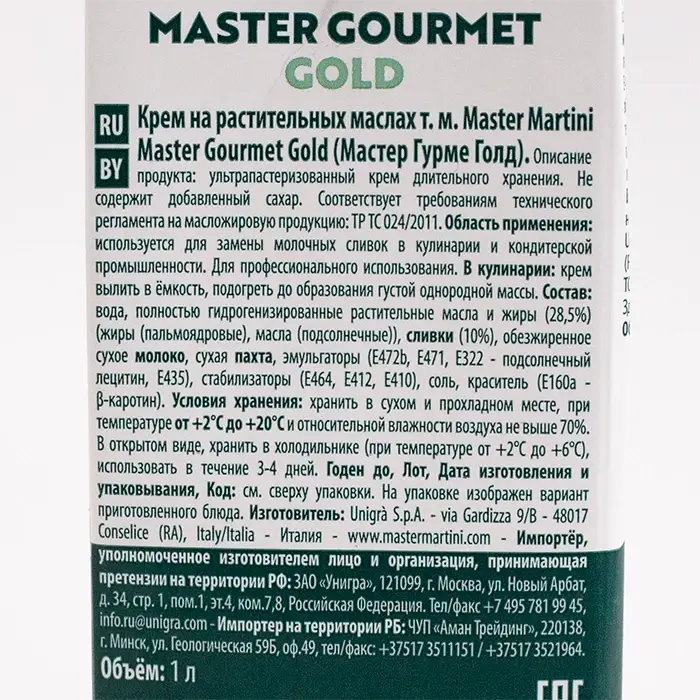 Сливки Master Gourmet Gold 33,5% растительно-животные без сахара Master Martini