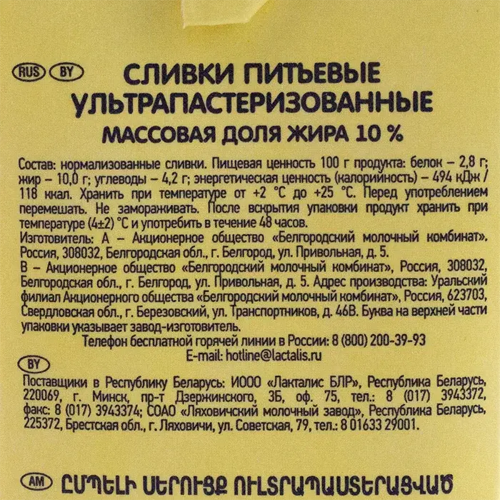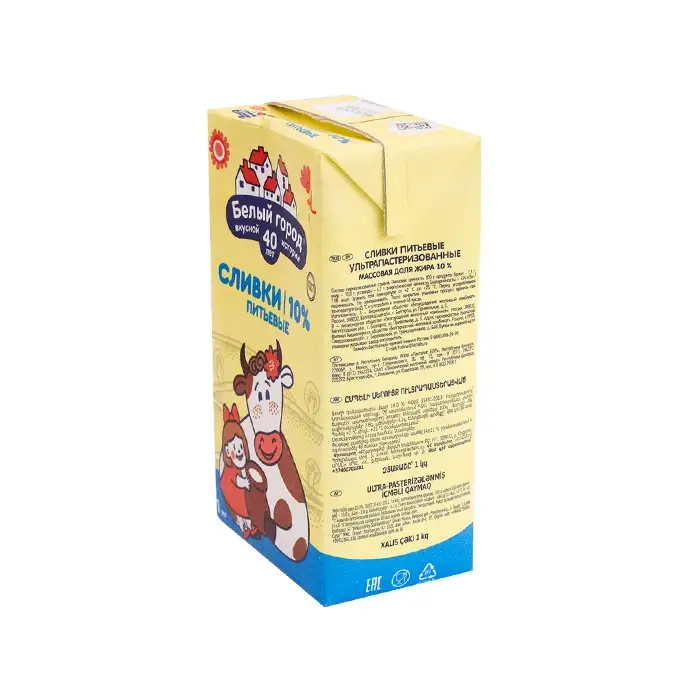 Питьевые сливки жирностью 10% приготовлены на основе свежего молока, не содержат консервантов, имеют сладкий, молочный вкус, аромат парного молока.