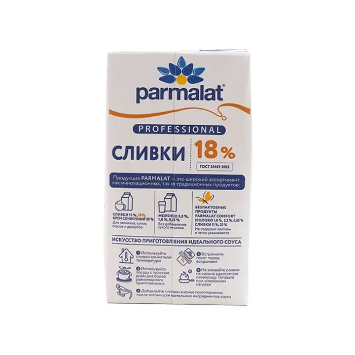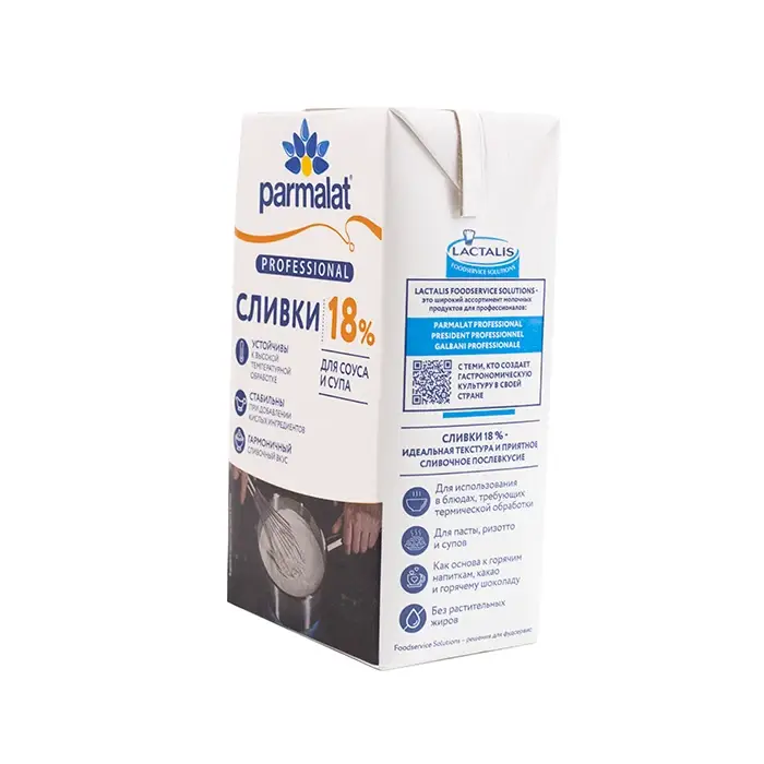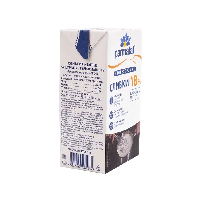 Сливки питьевые 18% Parmalat professional, 1 л