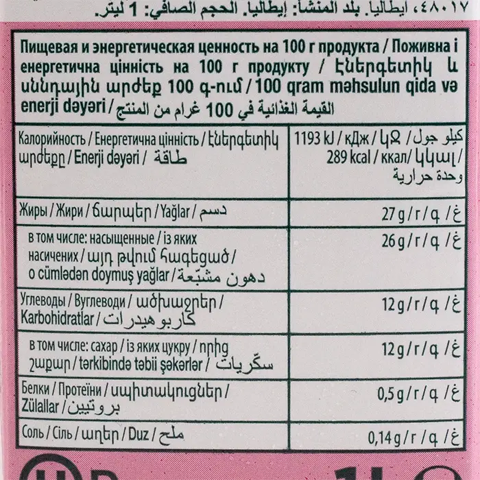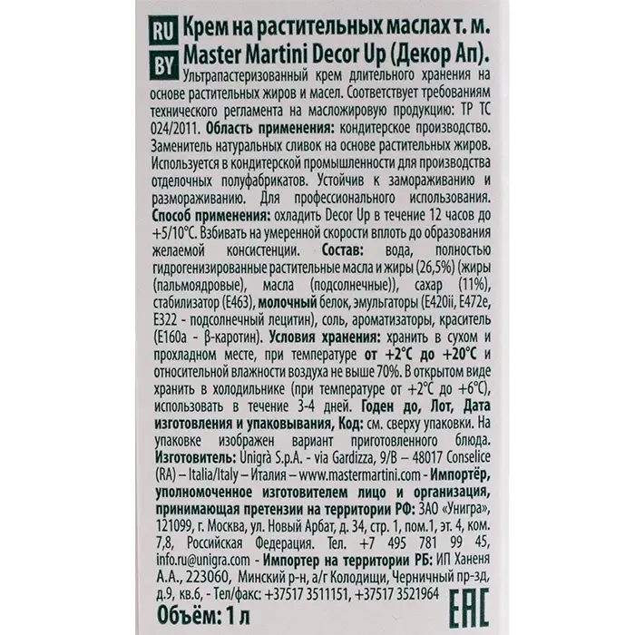 Сливки содержат растительные жиры, при взбивании объем увеличивается в 3,5-4 раза. Продукт сохраняет стабильность и не оседает.