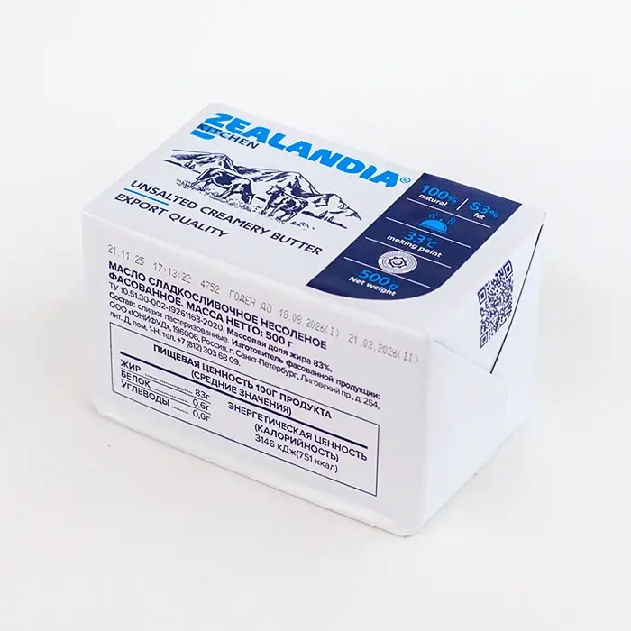 Масло сладко-сливочное несоленое Kitchen 83% Zealandia, 500 гр