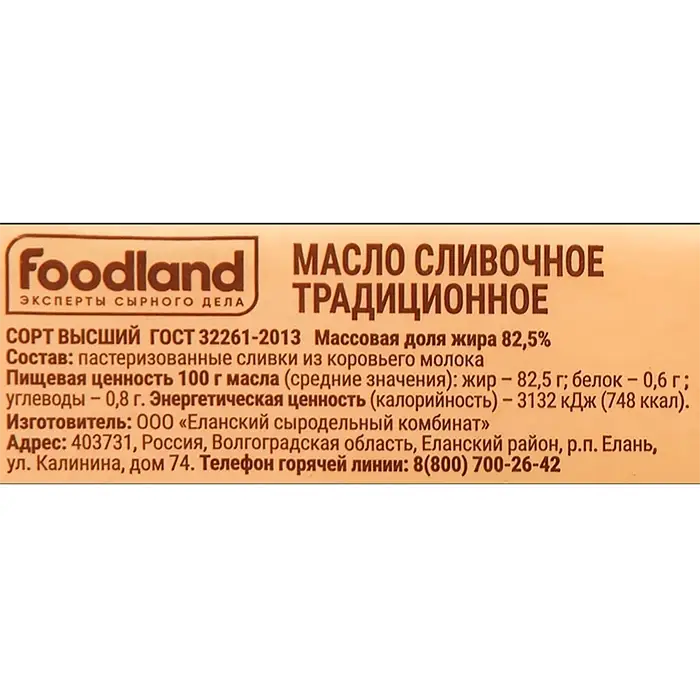 Масло сладкосливочное несоленое Традиционное 82,5% «Радость вкуса», 400 гр