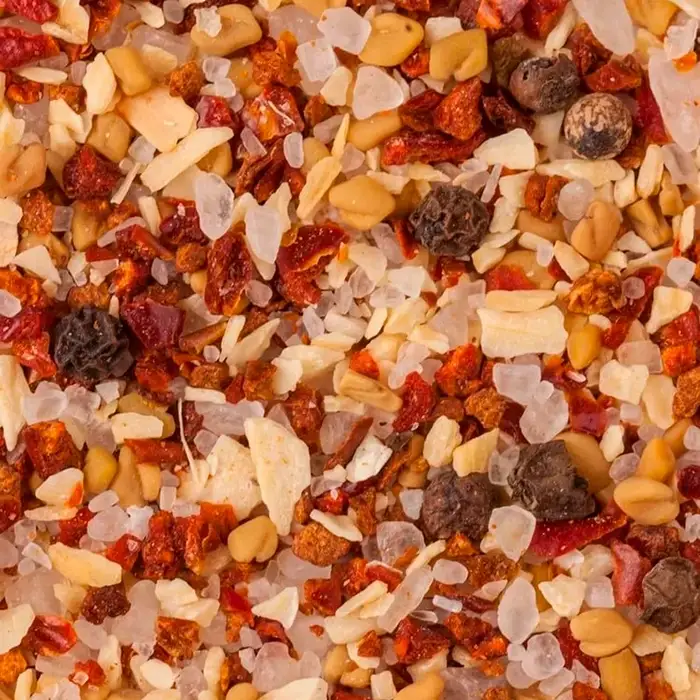 Сочетание паприки, чеснока, пажитника, лук, морской соли и черного перца придает блюдам пряный вкус и сбалансированный аромат.