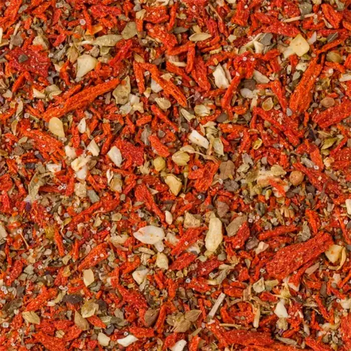 Приправа сочетает в себе сладость томатных хлопьев и остро-кислый вкус оливок, придает блюдам аутентичный средиземноморский вкус. Подходит для приготовления спредов, выпечки, пасты, антипасто и холодных закусок, приправа используется для запекания или украшения блюд.