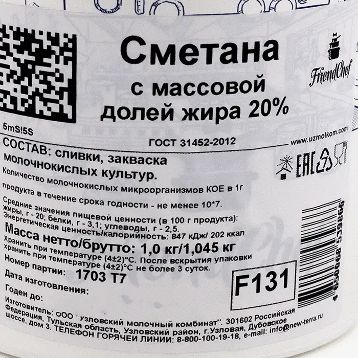 Сметана ГОСТ 20% FriendChef, 1 кг