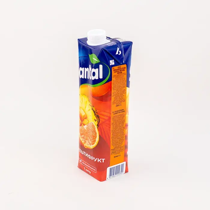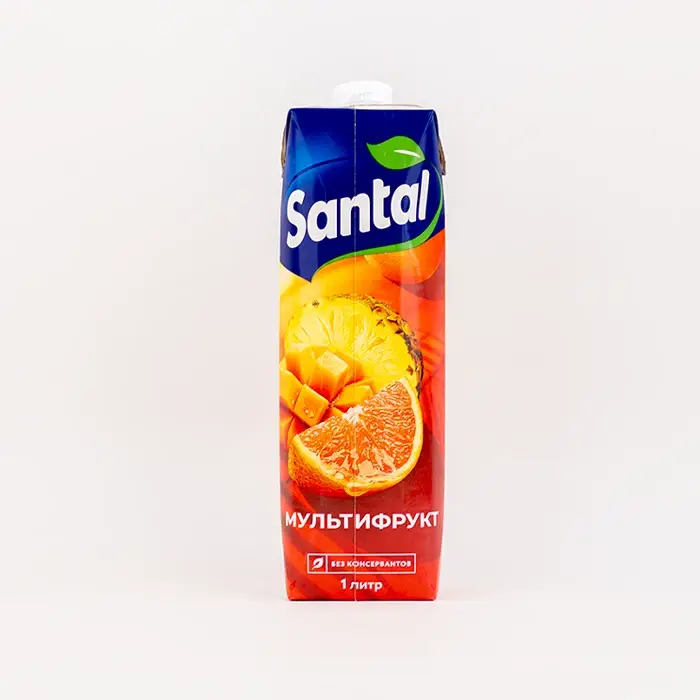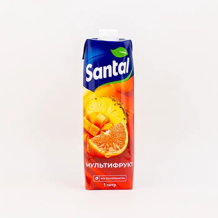 Сок мультифркуктовый (сок из: апельсина, ананаса, яблока, папайи, пюре: манго, персика, банана, киви, личи); яблочный сок, яблочный сок, банановое пюре, сахар, регулятор кислотности лимонная кислота, вода)