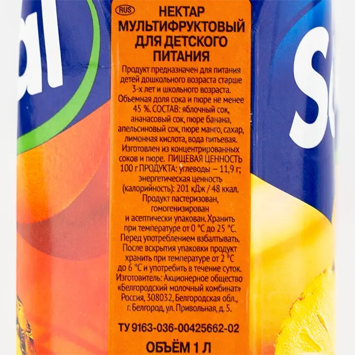 Нектар мультифруктовый для детского питания «4 Сезона», 1 л