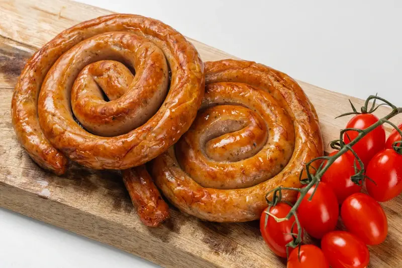 Нежные и сочные колбаски-улитки, с насыщенным мясным ароматом и нотками специй и душистых трав.