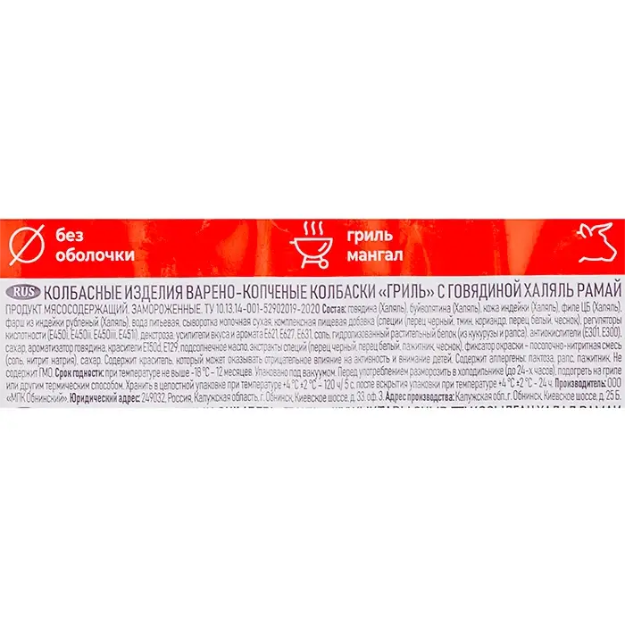 Колбаски Гриль Говяжьи Халяль, "Рамай", 560 гр