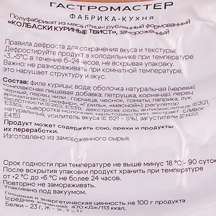 Колбаски куриные Твист «Гастромастер», 0,5-1 кг