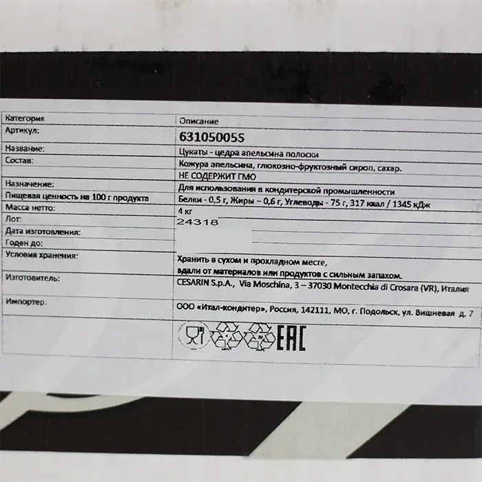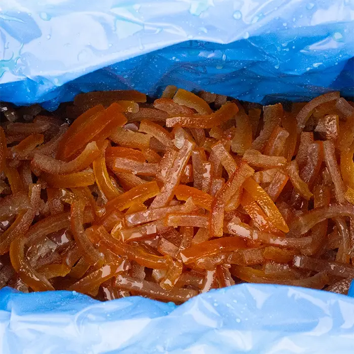 Удобная форма нарезки позволяет легко добавлять цукаты в выпечку, десерты, кондитерские изделия или употреблять отдельно.