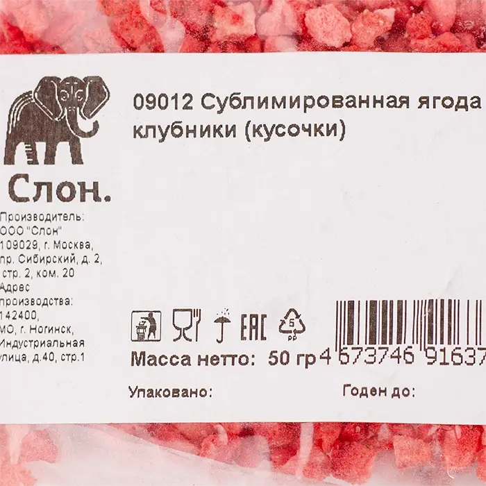 Сублимированная ягода клубники (кусочки) «Слон», 50 гр