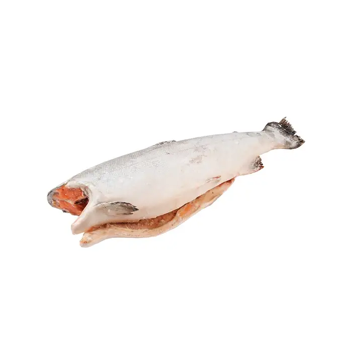 Потрошеный свежемороженый кижуч без головы имеет низкокалорийное красное мясо с небольшим количеством костей, сочную и нежную текстуру и легкую горчинку во вкусе, содержит много витаминов и микроэлементов.