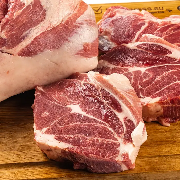 Шейка свиная замороженная - нежное свиное мясо с прожилками сала. Сочный отруб без кости.