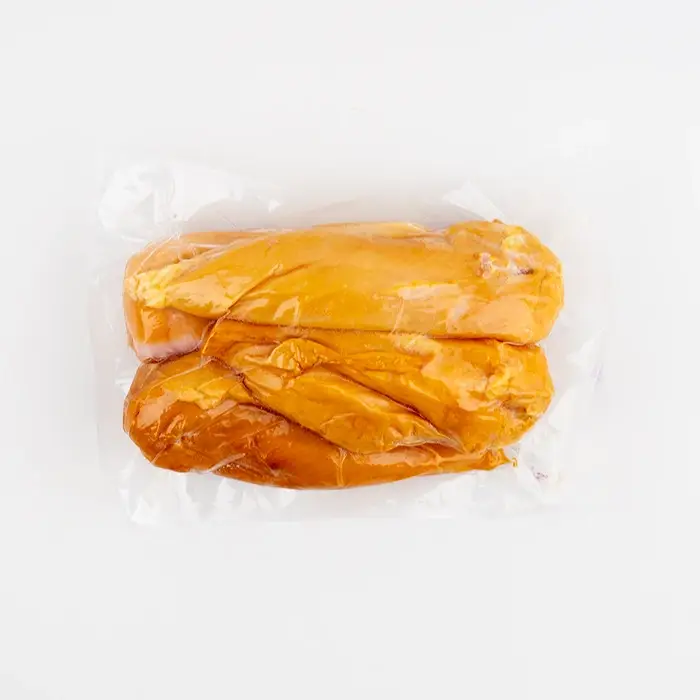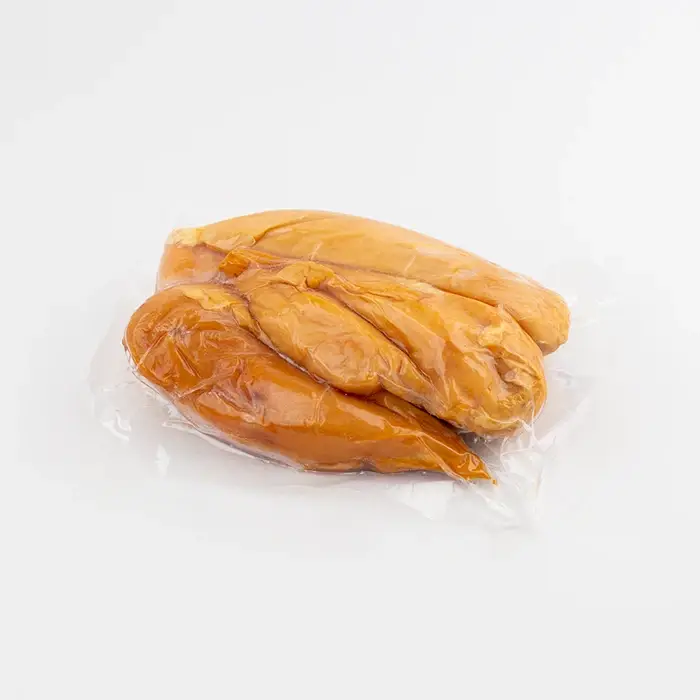 Сочная варено-копченая грудка в вакуумной упаковке долго сохраняет яркий вкус и аромат дымка. Подходит для первых блюд, для бутербродов, бургеров и сэндвичей. Готова к употреблению.