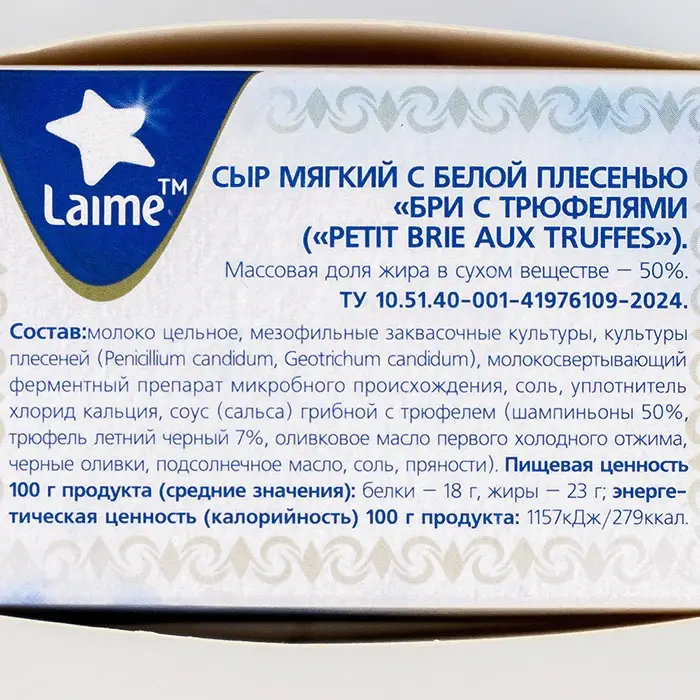 Сыр мягкий с белой плесенью Бри с трюфелями 50% Laime, 100 г