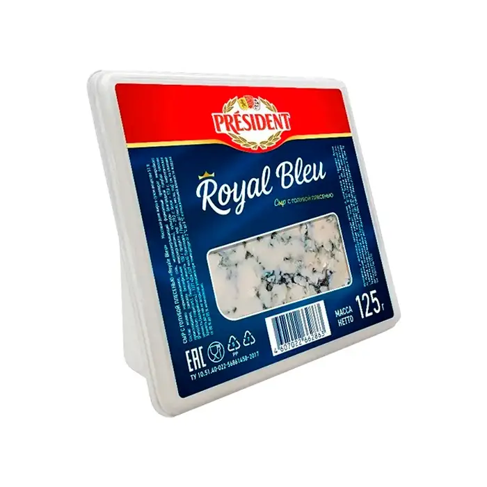 Сыр мягкий Royal bleu c голубой плесенью, жирность 55% President 125 гр