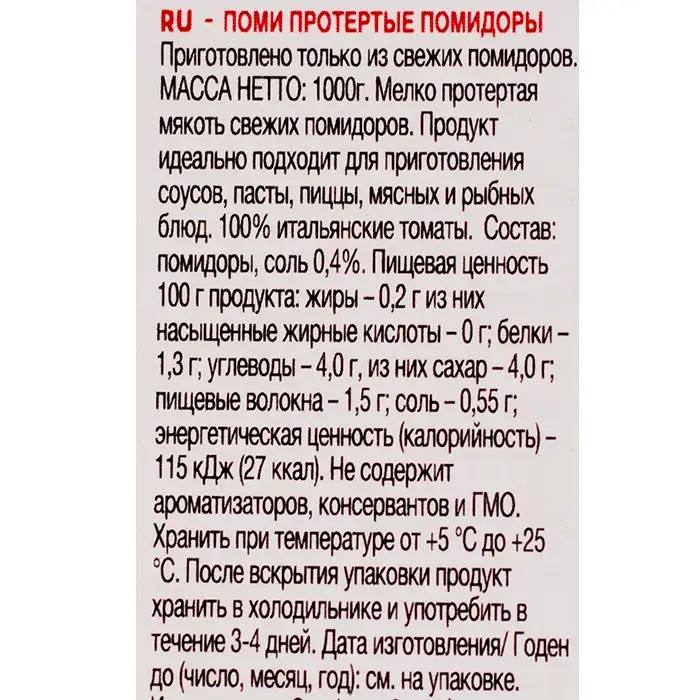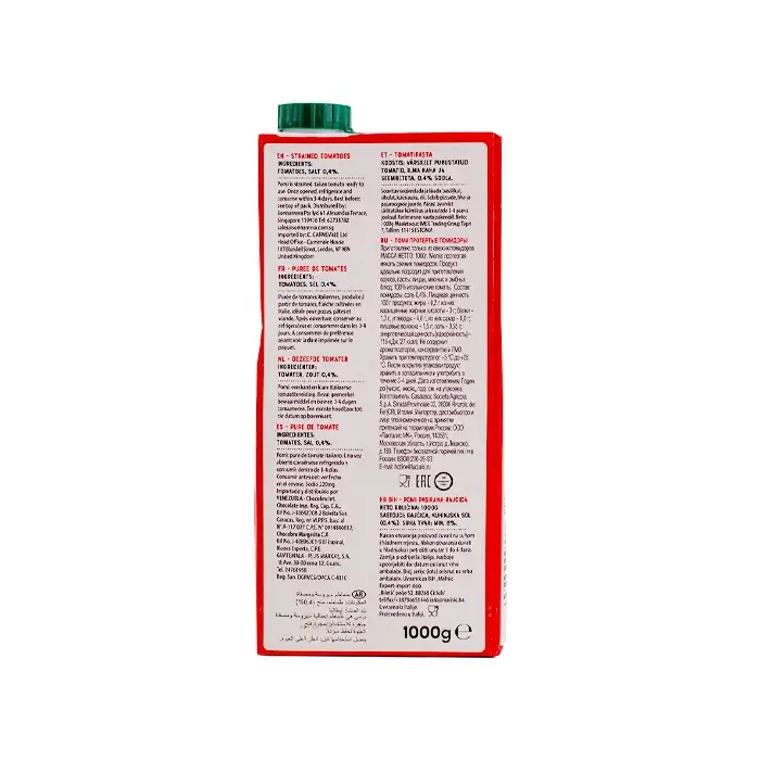 Протертые томаты, выращенные в Италии - свежие, густые и ароматные, оригинальный вкус классического продукта.