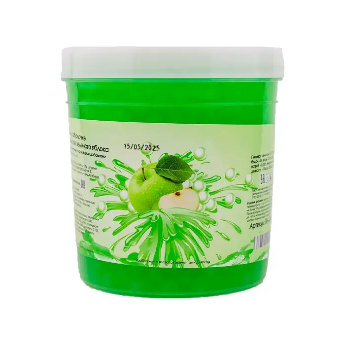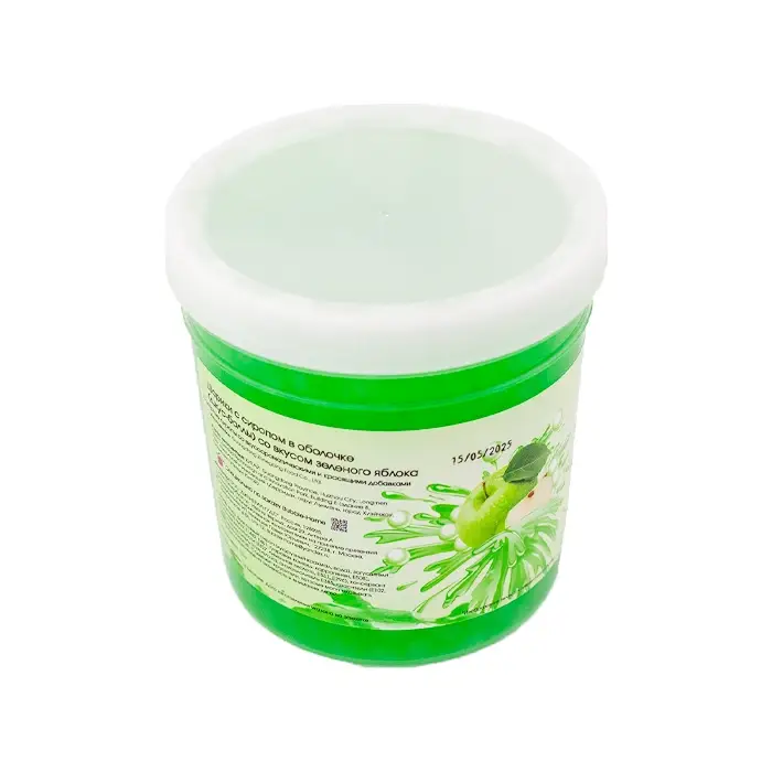 Шарики имеют идеальную сферическую форму, диаметр около 8-10 мм Сироп, пропитывает каждый шарик, наделяя его сочной сладостью и подчеркивая натуральный вкус яблока отлично сочетаются с холодными напитками и десертами.