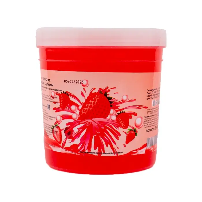 Сочные шарики с клубничной начинкой лопаются при укусе, раскрывая знакомый вкус летней ягоды. Идеальны для bubble tea, лимонадов и авторских десертов. Диаметр 8–10 мм, готовый продукт в сиропе отлично сочетаются с холодными напитками и десертами.