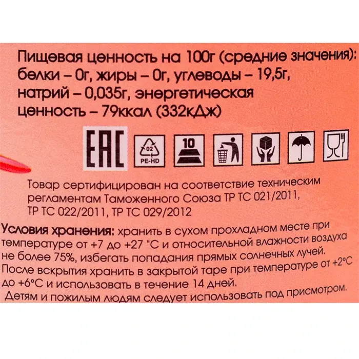 Хранить в прохладном, сухом и проветриваемом месте, вдали от прямых солнечных лучей. Срок годности 12 месяцев. Срок хранения открытой банки 2 недели в холодильнике.