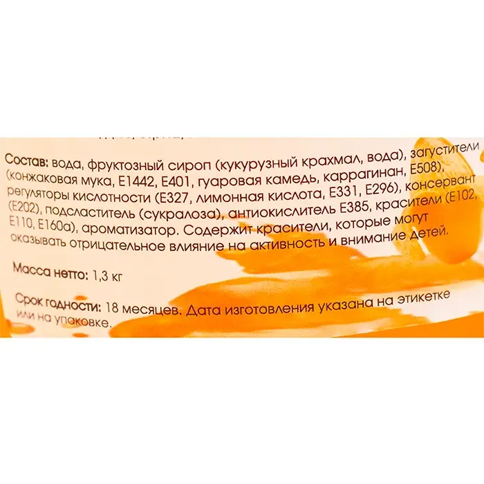 Питьевая вода, фруктозный сироп, сахар, пищевые добавки, краситель, ароматизатор «Манго».