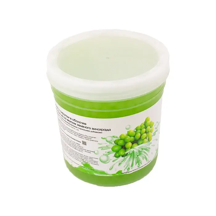 Сочные шарики диаметром 8–10 мм с мягким «лопающимся» эффектом. Шарики с виноградной начинкой отлично сочетаются с холодными напитками и десертами.