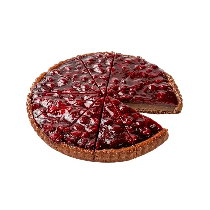 Нежный пирог с насыщенным шоколадным вкусом, который оттеняет сочная вишня с кислинкой. Пирог уже удобно и аккуратно нарезан на порции.