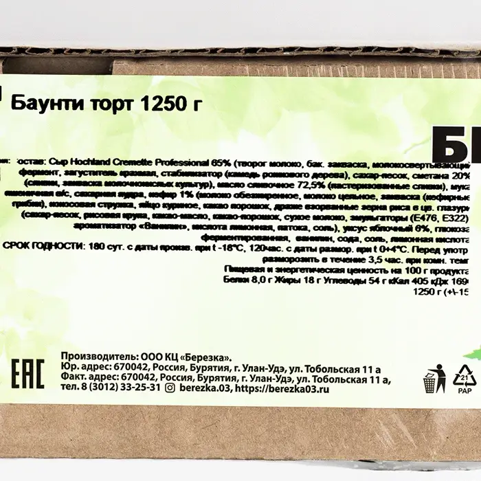 Торт Баунти «Березка», 12 порций, 1,25 кг
