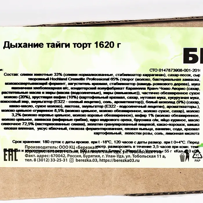 Торт Дыхание тайги «Березка», 12 порций, 1,62 кг