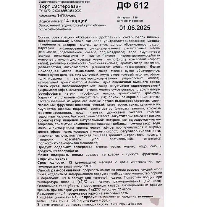 Торт Эстерхази (14 порций) Dessert FANTASY, 1,61 кг