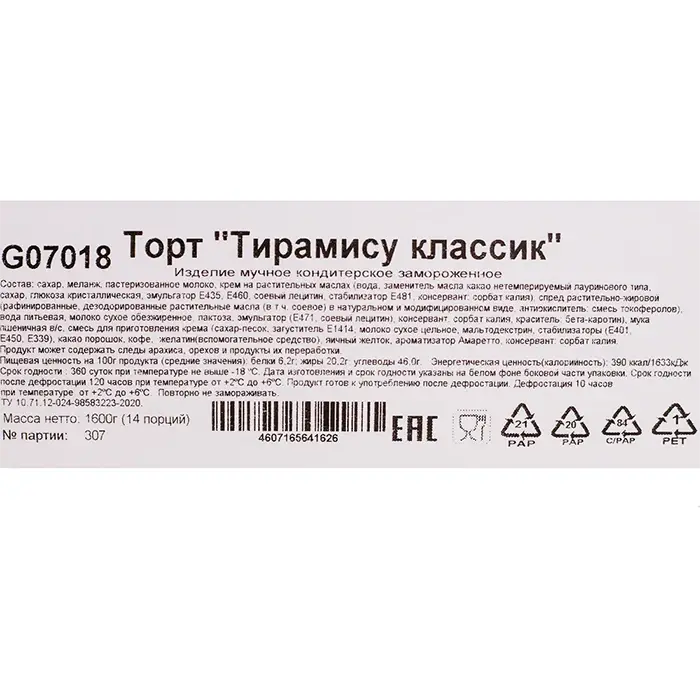 Торт Тирамису «Кристоф», 14 порций, 1,6 кг