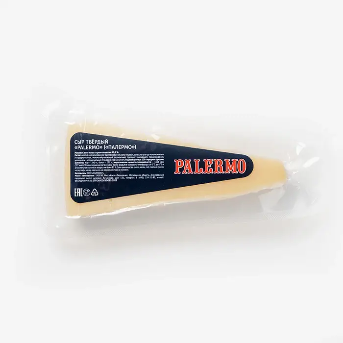 Твердый сыр Palermo имеет характерную для твердых сортов текстуру, обладает насыщенным сырным вкусом с пикантным послевкусием.