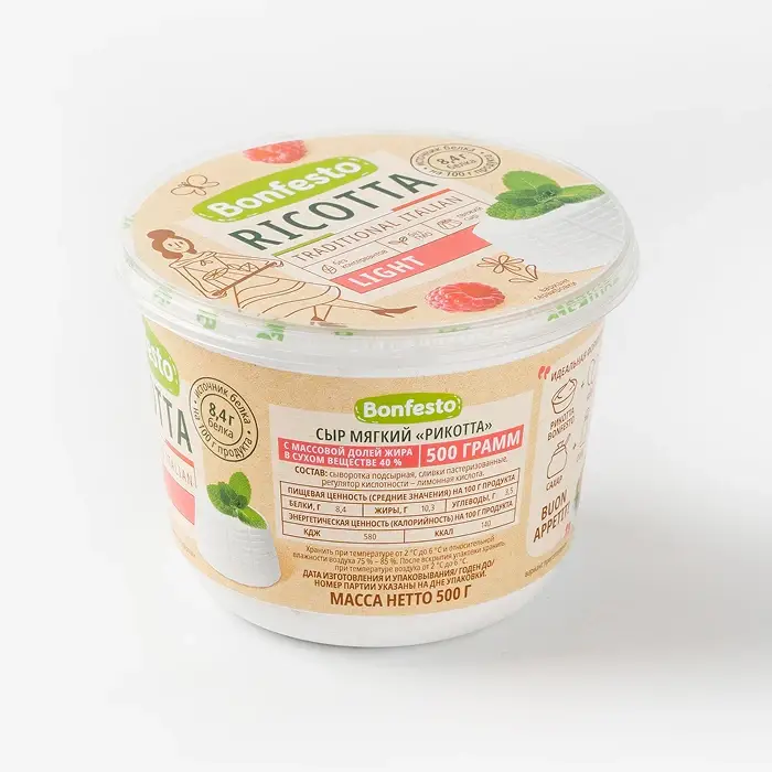 Light — пониженная жирность по сравнению с традиционной рикоттой.