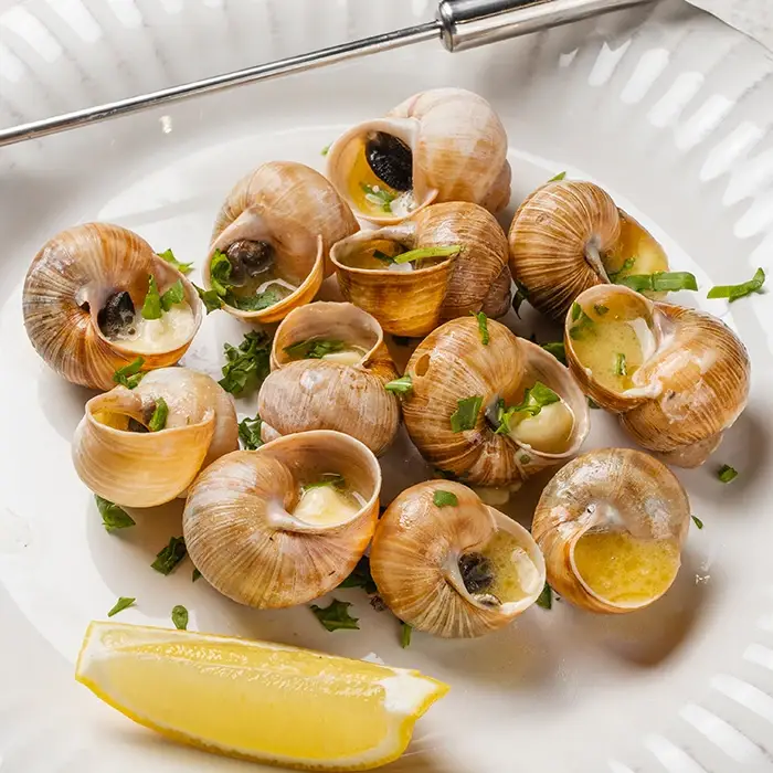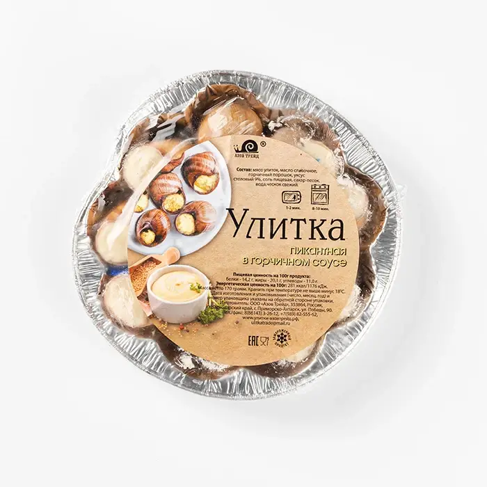 Мясо улиток, масло сливочное, горчичный порошок, уксус столовый 9%, соль пищевая, сахар-песок, вода, чеснок свежий