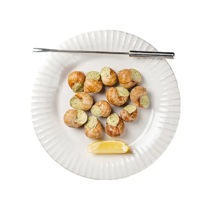 Мясо улиток содержит большое количество ценного белка, почти в полтора раза превышающего содержание его в курином яйце. Оно по своему составу маложирное, очень питательно. Так же содержит комплекс незаменимых аминокислот, что дает ему право с успехом употребляться в качестве диетического продукта. Глубокая заморозка сохраняет все вкусовые свойства улиток.