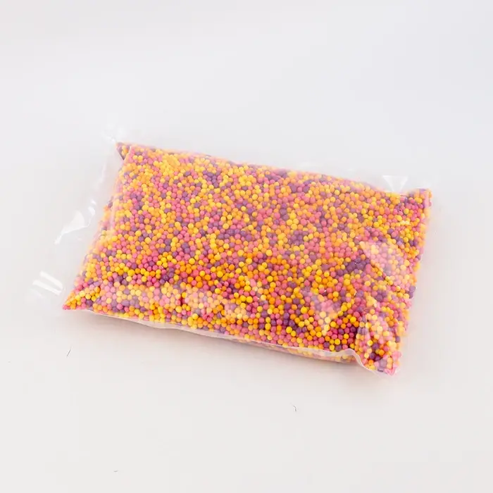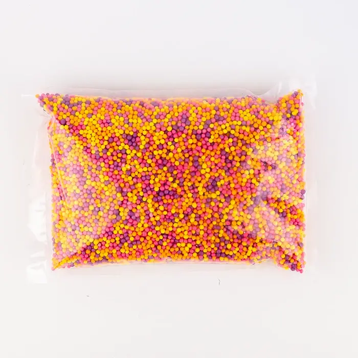 Цветные рисовые шарики — декоративная посыпка для десертов. Шарики имеют сыпучую консистенцию, одинаковый размер, плотную, хрустящую текстуру, сладковатый аромат и рисовый вкус с карамельными нотами. Посыпка сохраняет форму, не размокает после нанесения на крем или глазурь.