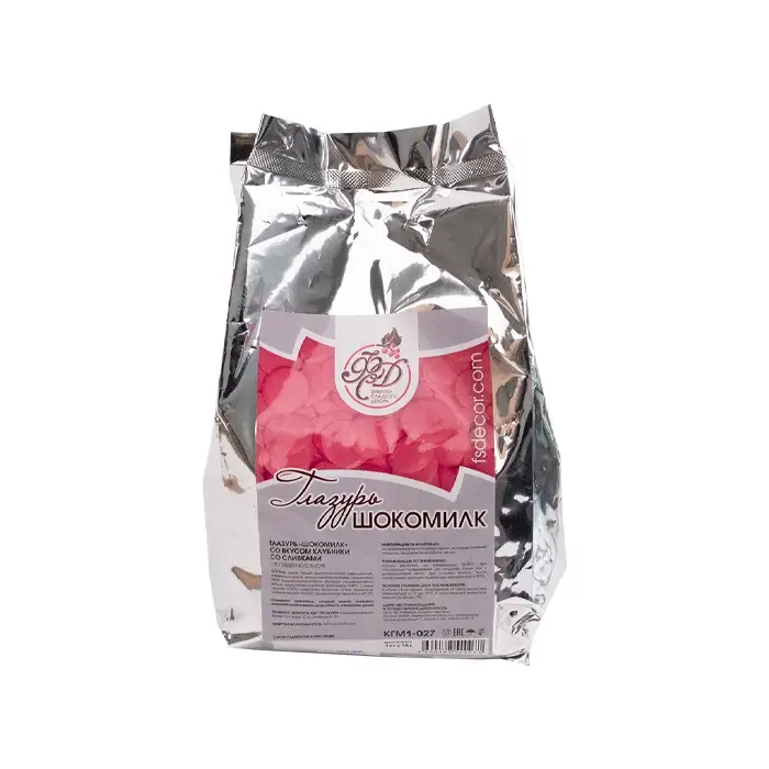 Глазурь кондитерская, диски со вкусом Клубники со сливками "ФСД", 1 кг