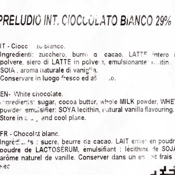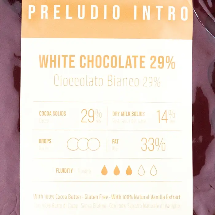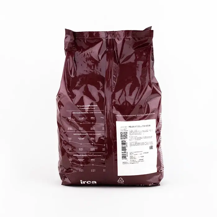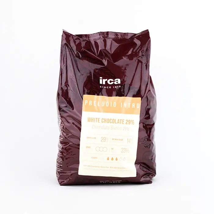 Белый шоколад со стабильным качеством, средней текучестью, ярким и выразительным вкусом с нотками молока, сливок, карамели и ванили в удобных дисках. Температура плавления шоколада — 45°C, температура темперирования — 28–30°C.