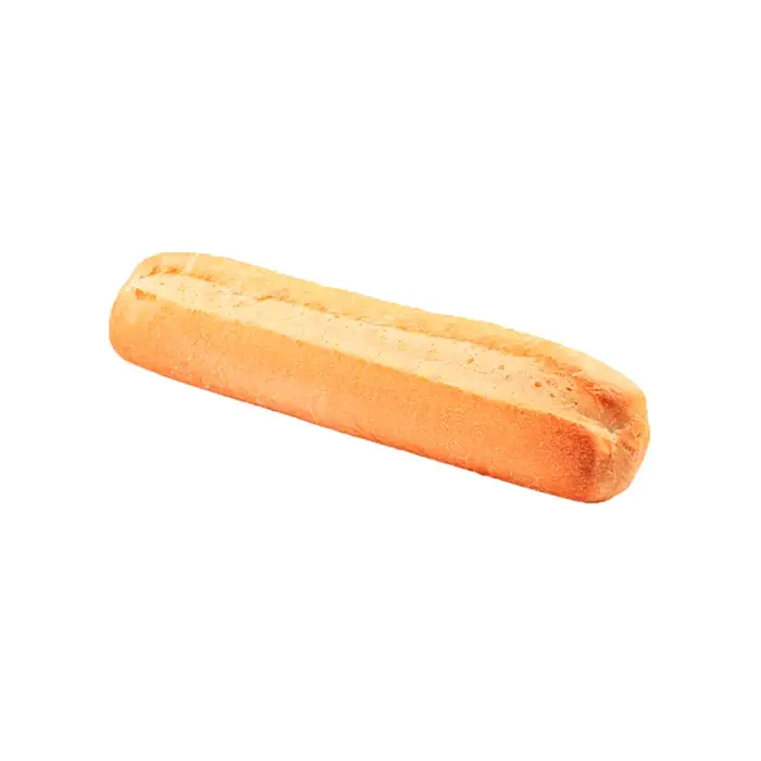 Мягкий пшеничный багет с хрустящей корочкой и мягким и нежным мякишем. Хлеб уже выпечен, можно дополнительно его выпечь для еще более золотистой корочки.