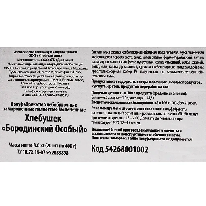 Хлебный домкод товара: ъ9728038