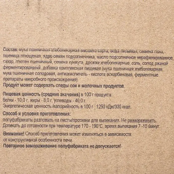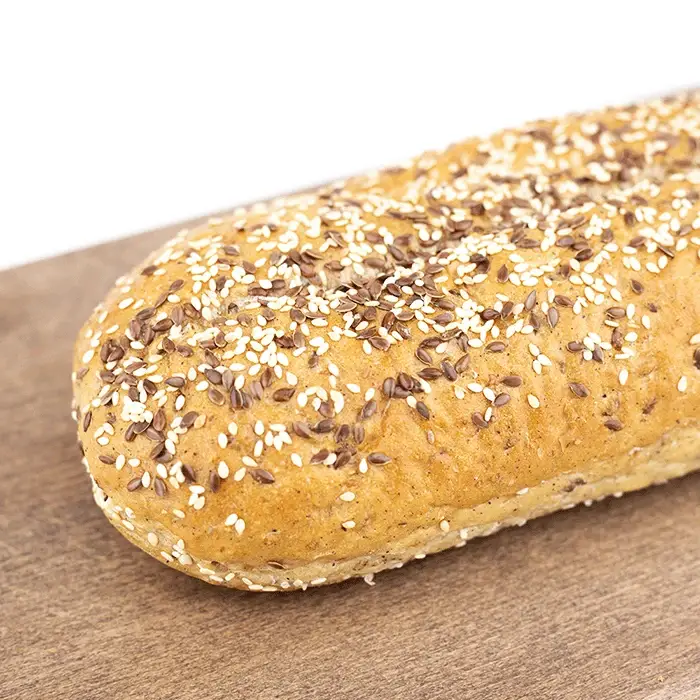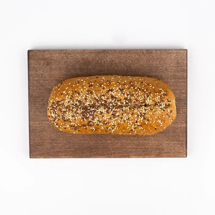 Хлеб имеет тонкую, румяную корочку, упругую пористую текстуру с вкраплениями злаков, насыщенный сладко-пряный вкус, аромат свежей выпечки с отчетливыми ореховыми нотами. Хлеб легко режется, ломтики держат форму, не крошатся и не размокают при контакте с соусами или начинками.