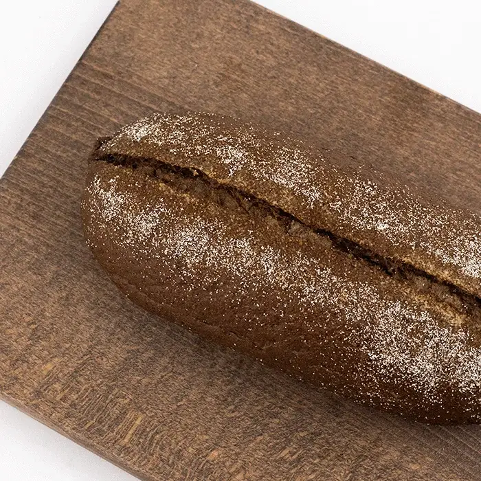 Затемненный пшенично-ржаной хлеб на заварке с добавлением кориандра и тмина, сделанный в лучших традициях Прибалтики. Богатый насыщенный сладко-пряный вкус, яркий солодовый аромат, нежная структура мякиша.
