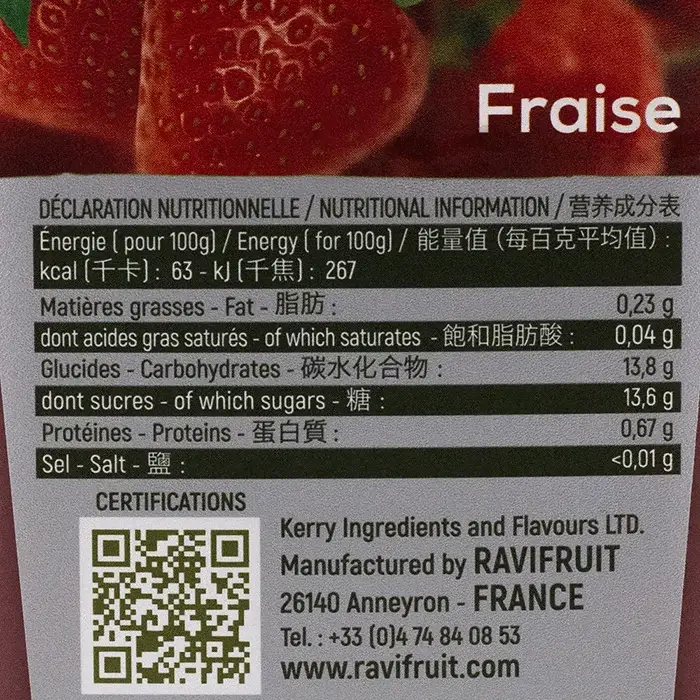 Пюре замороженное Клубника Ravifruit, 1 кг