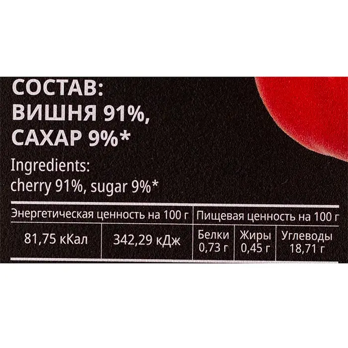 Представляет собой натуральный продукт, изготовленный из отборных ягод вишни. Оно предназначено для широкого спектра применения в кулинарии и питании.