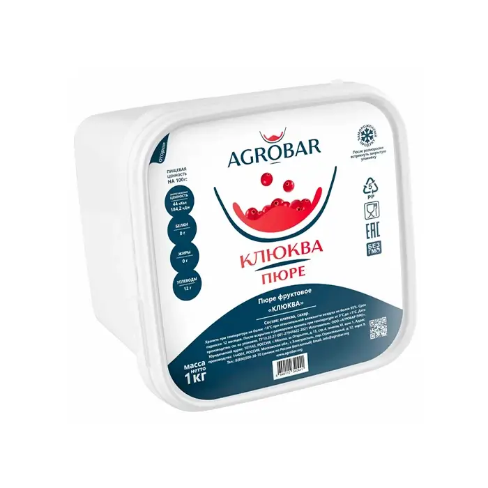 Пюре замороженное Клюква AGROBAR, 1 кг