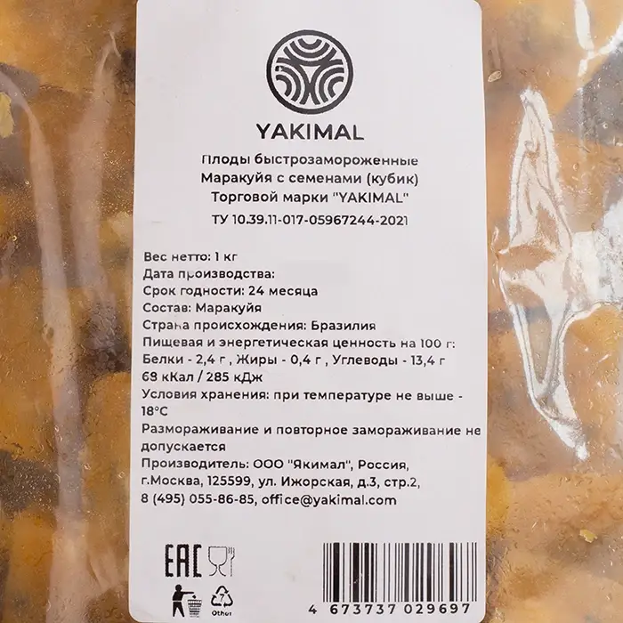 Маракуйя с семенами, кубик, 1 кг