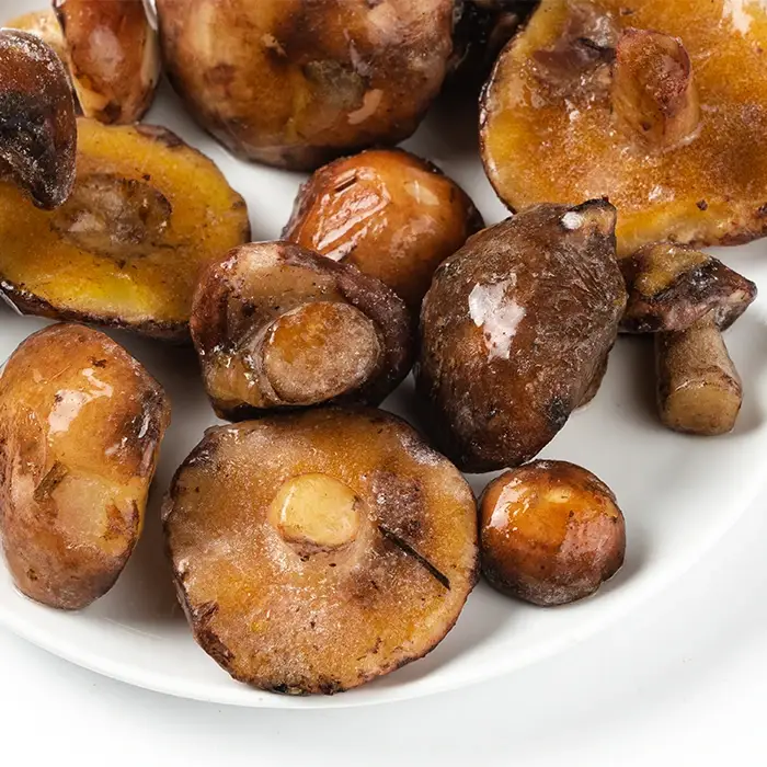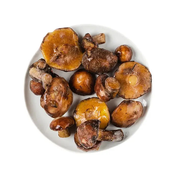 Свежемороженые крепкие маслята имеют сладкий вкус с кислинкой, мясистую, плотную, эластичную текстуру, легкий фруктовый аромат.